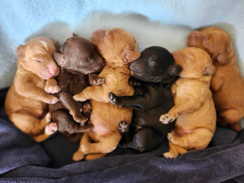 Winnie is our lively and clever 3-year-old chocolate Spoodle who keeps us entertained with her endless energy and impressive bag of tricks. She’s as smart as they come, always eager to show off her skills and charm her way to a treat.